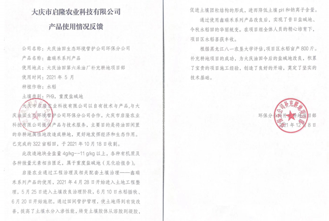 與多所高校、研究院、各大種業(yè)企業(yè)合作種植改良鹽堿地水稻。在黑龍江、吉林、內(nèi)蒙古等地有多處示范基地。在新疆等地區(qū)種植草木,環(huán)境綠化等工程。幾年來,啟隆人大力弘揚(yáng)“創(chuàng)新、堅(jiān)韌、拼搏、開拓”的企業(yè)精神,在研發(fā)上勇攀高峰。大慶啟隆 的企業(yè)宗旨是“誠信于鹽堿地的朋友,服務(wù)于鹽堿地的朋友”,努力為鹽堿地改良做出積極的貢獻(xiàn)。